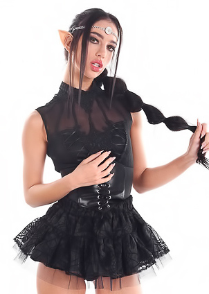 Krystal shows off her cute body in a black lace